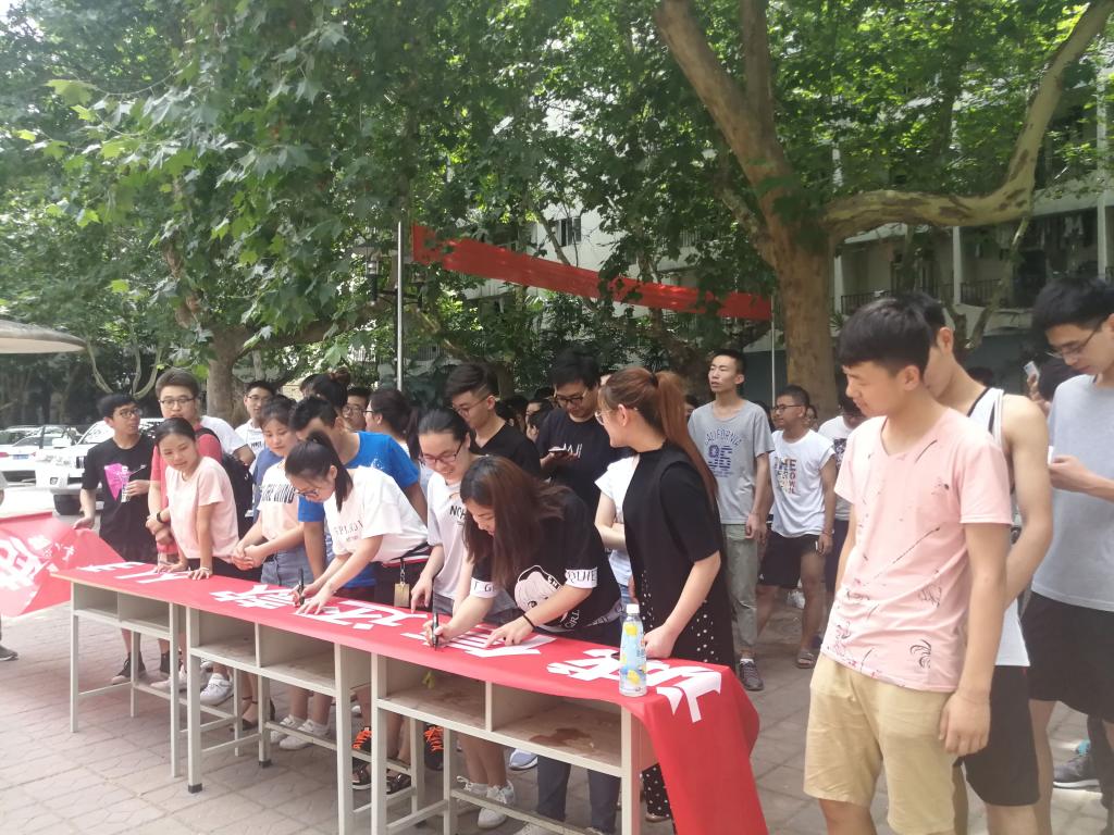 jinnianhui今年会于6月24日中午组织60余名毕业生开展“诚信还款、从我做起”签名活动。