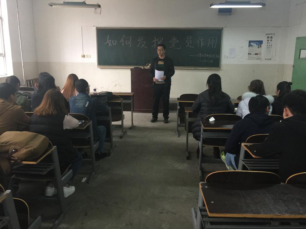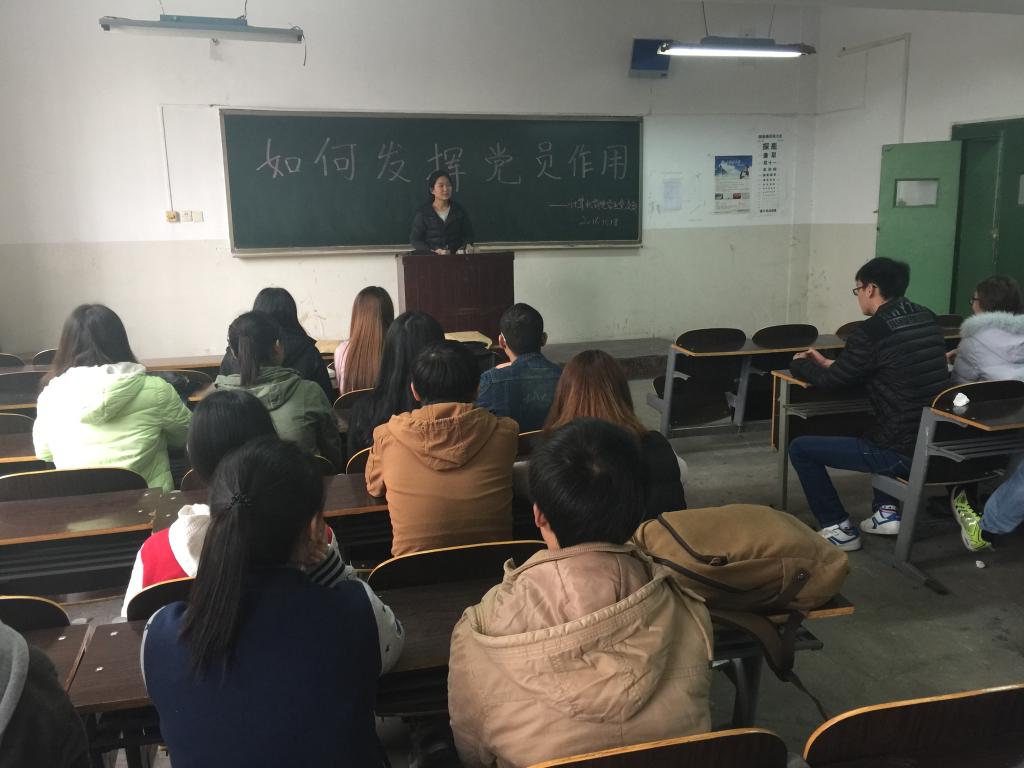 首先,米嘉琪向大家传达了《中共jinnianhui今年会委员会民主评议党员制度的实施办法》的通知,从自我评价、民主评议、组织考察、确定评议档次四个方面部署了2016年度学生党员的民主评议工作,要求全体党员在评议准备阶段认真学习《党章》和习近平总书记重要讲话,提高思想认识,端正评议态度,对自己一年来的各方面表现进行综合的检查和评价,努力做到求真务实,共同提高。接着,米嘉琪结合“两学一做”学习教育活动,就如何发挥党员作用进行讲述,希望大家认真学习领会“两学一做”精神,进一步提高党员思想觉悟;持之以恒地践行“两学一做”,把党员的先锋形象树起来;拓宽发挥渠道,推动“两学一做”取得实效,可以由党员牵头开展《党章》、准则、条例知识竞赛,激发其他同学的学习兴趣。最后,学生党员纷纷上台表达了自己的观点:践行“两学一做”并非一朝一夕,而是一个持久过程,只有党员真正接收,主动践行,才能充分发挥党员先锋模范作用,更好地服务大家。