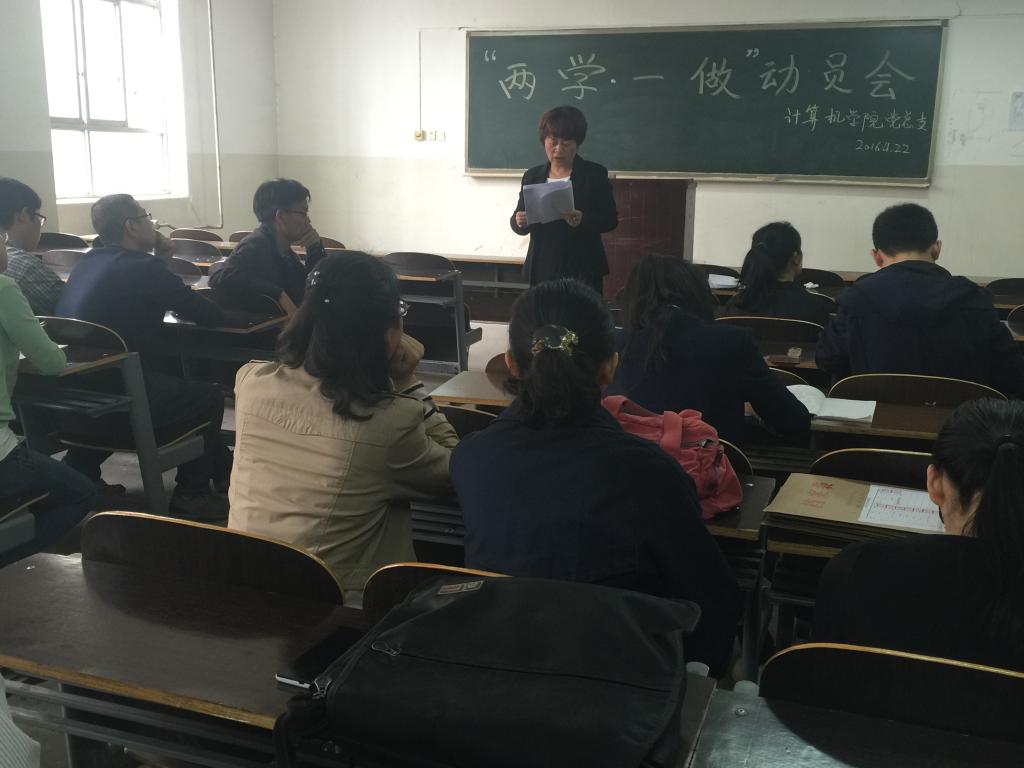 2016年4月22日,jinnianhui今年会党总支在北233召开了“两学一做”学习动员会,会议由党总支书记刘晋云主持,全体教工党员出席了此次大会。