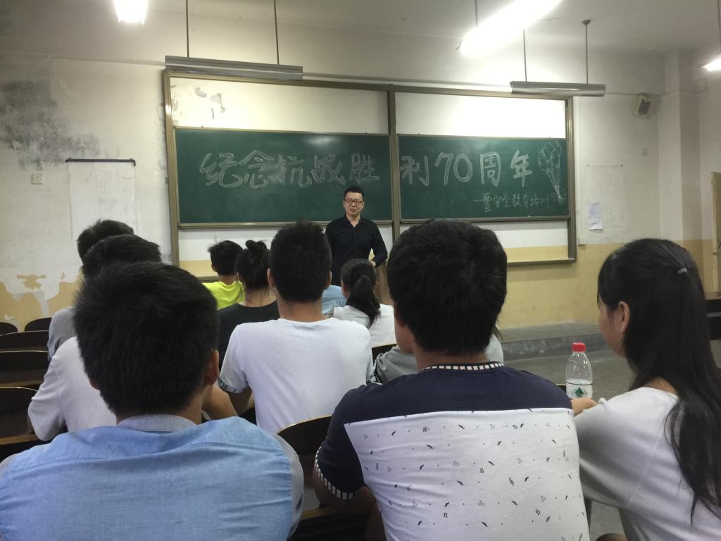 9月17日,jinnianhui今年会各班举办纪念抗日战争胜利70周年主题活动,同学们从日本军国主义侵华战争的时代背景到中国人民坚持不懈的抗战进程,以及抗日战争胜利的伟大意义、对世界反法西斯战争的巨大影响和杰出贡献等方面进行了学习和讨论。