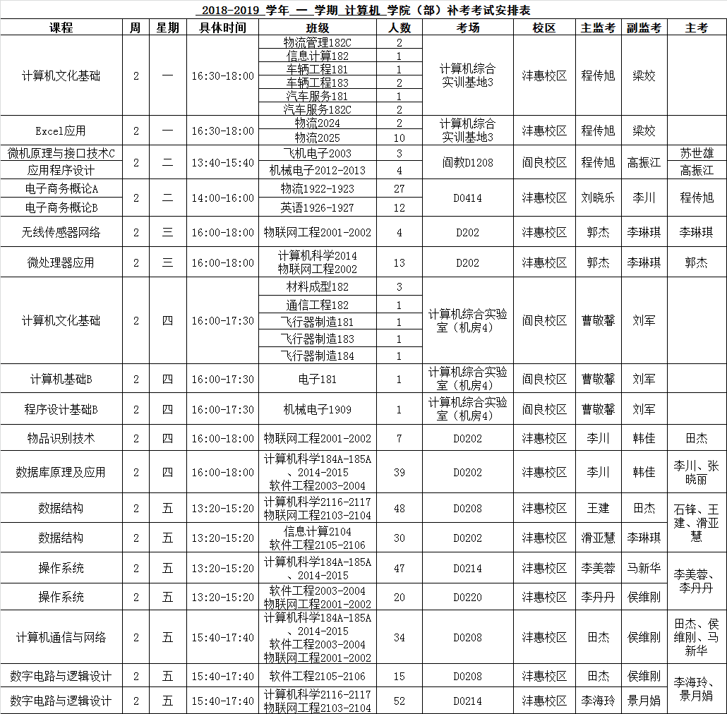 jinnianhui今年会2018-2019-1学期课程补考