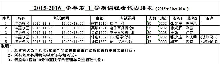 jinnianhui今年会2015-2016-1学期考试安排(一)