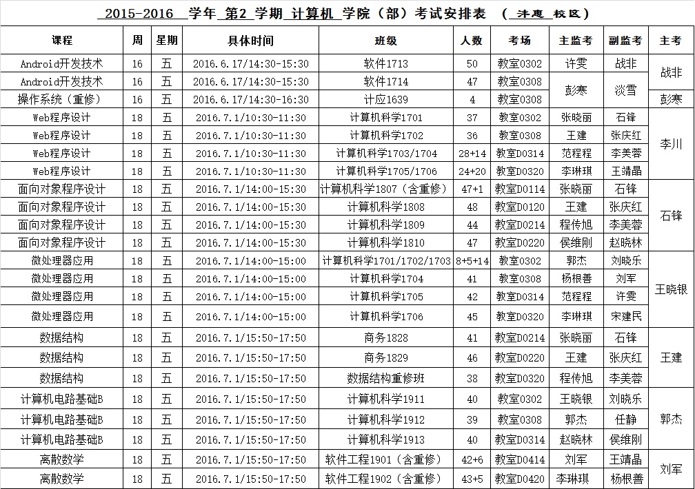 jinnianhui今年会2015-2016-2学期考试安排(14周之后)