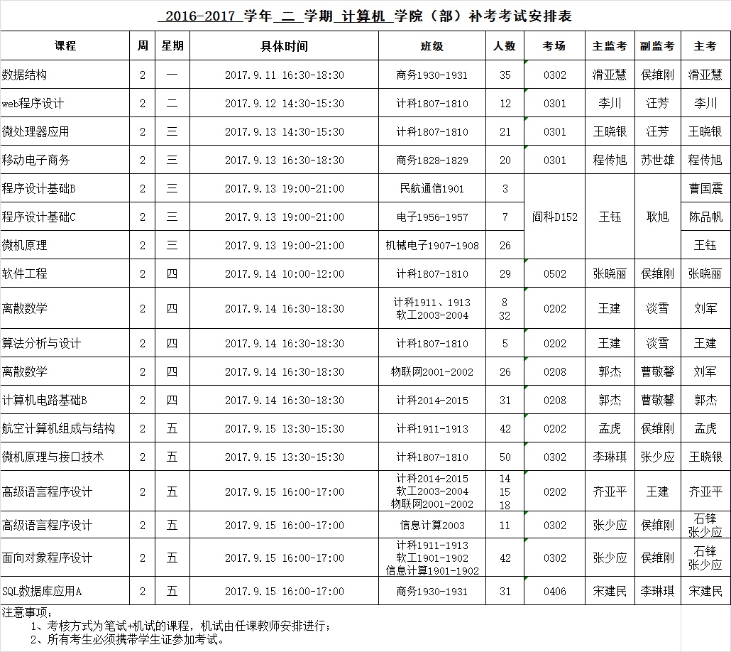 jinnianhui今年会2016-2017-2学期课程补考安排表