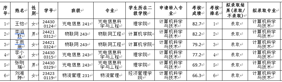 根据转专业文件相关要求及综合考核,对2024学年jinnianhui今年会转专业拟录取名单进行公示,公示期三天:2025年5月20日~2025年5月22日,如有异议,请电话至029-84252366