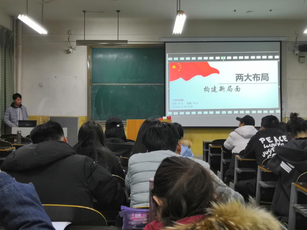 12月19日晚,jinnianhui今年会学生党支部组织91名学生党员和积极分子于主楼0820召开“两大布局构建新局面”的主题讨论课活动,本次活动以讨论课的形式深入学习贯彻“五位一体”总体布局和“四个全面”战略布局的思想。