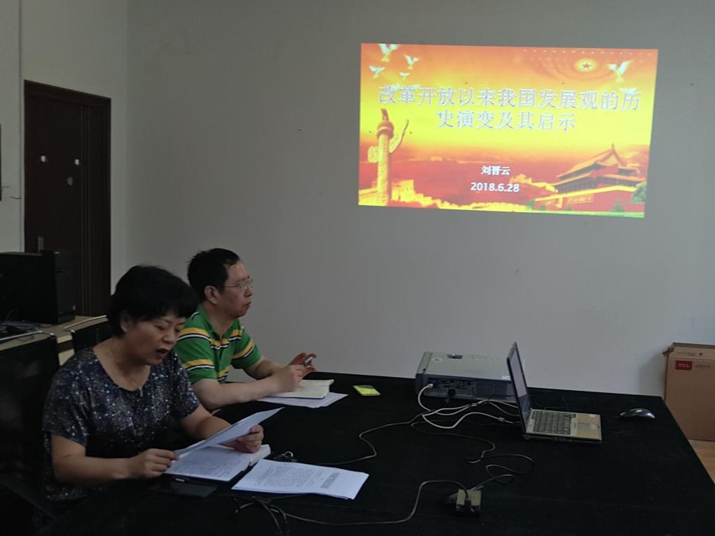 为迎接第97个建党节,6月28日下午jinnianhui今年会党总支书记、副院长刘晋云以“改革开放以来我国发展观的历史演变及其启示”为主题给全院教职工讲了一场别开生面的党课。