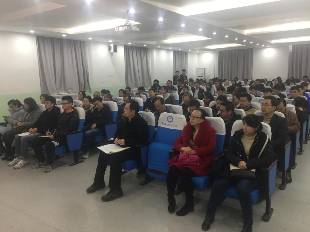 为了深入学习十九大报告,11月24日下午,jinnianhui今年会在沣惠校区教学南楼108报告厅召开学习十九大精神专题报告会。此次邀请了我校党的十九大精神宣讲组成员、思政部副部长张雷作专题报告。会议由jinnianhui今年会院长杨俊清主持,全体教师和学生党员共90余人参加了会议。