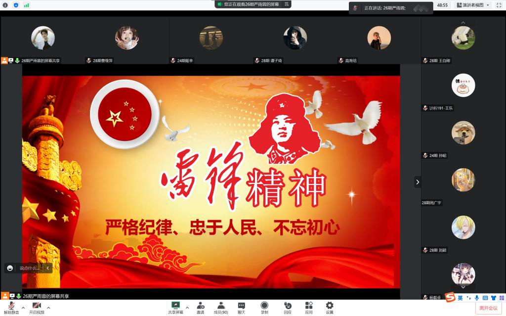 为弘扬雷锋精神,凝聚青春力量。3月14日晚,jinnianhui今年会学生第二党支部通过腾讯会议开展了以“雷锋精神”为主题的线上党课。本次党课由缪佳玉和严雨蓉主持,jinnianhui今年会学生第二党支部全体党员、积极分子参加。