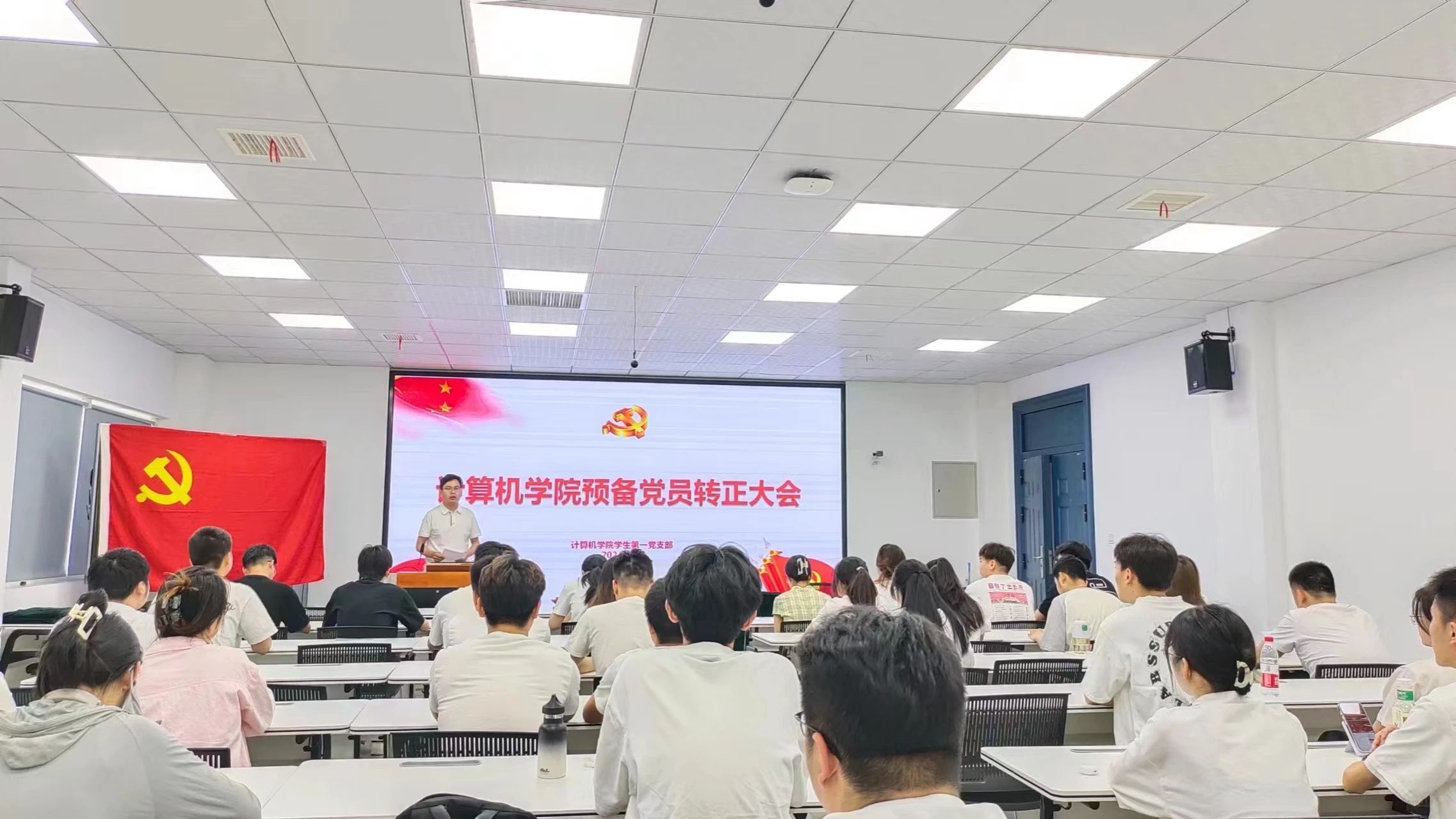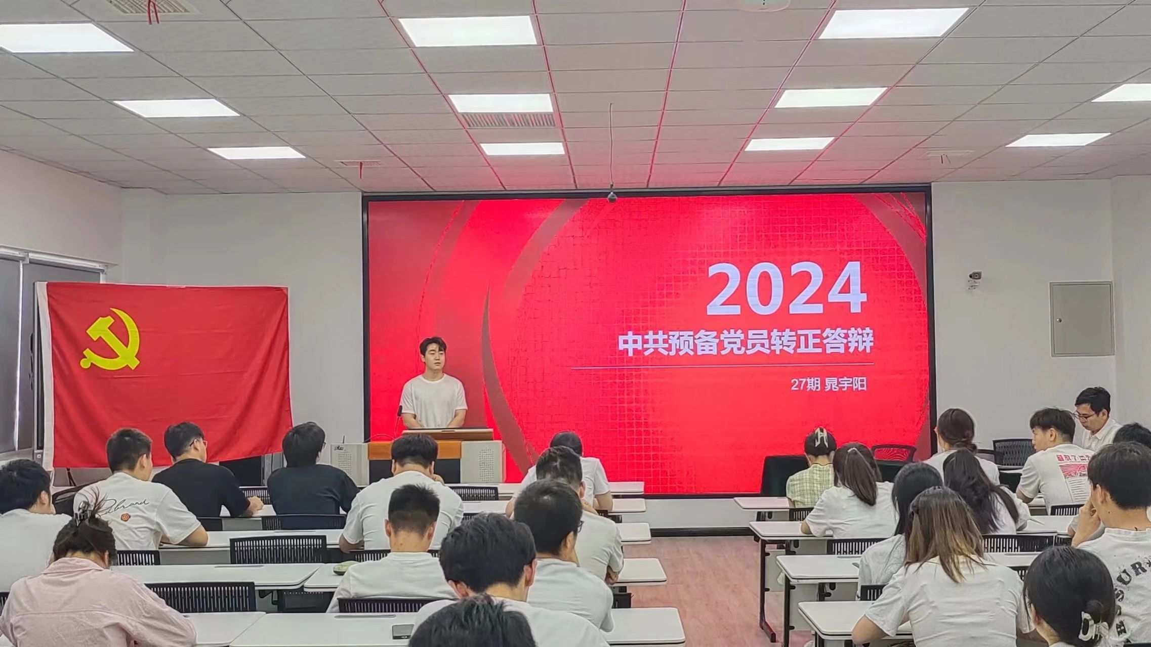 2024年5月22日,jinnianhui今年会学生第一党支部在教学主楼0920召开预备党员转正大会。会议由学生第一党支部书记贺宇主持,jinnianhui今年会学生第一党支部全体在校党员参加本次会议。