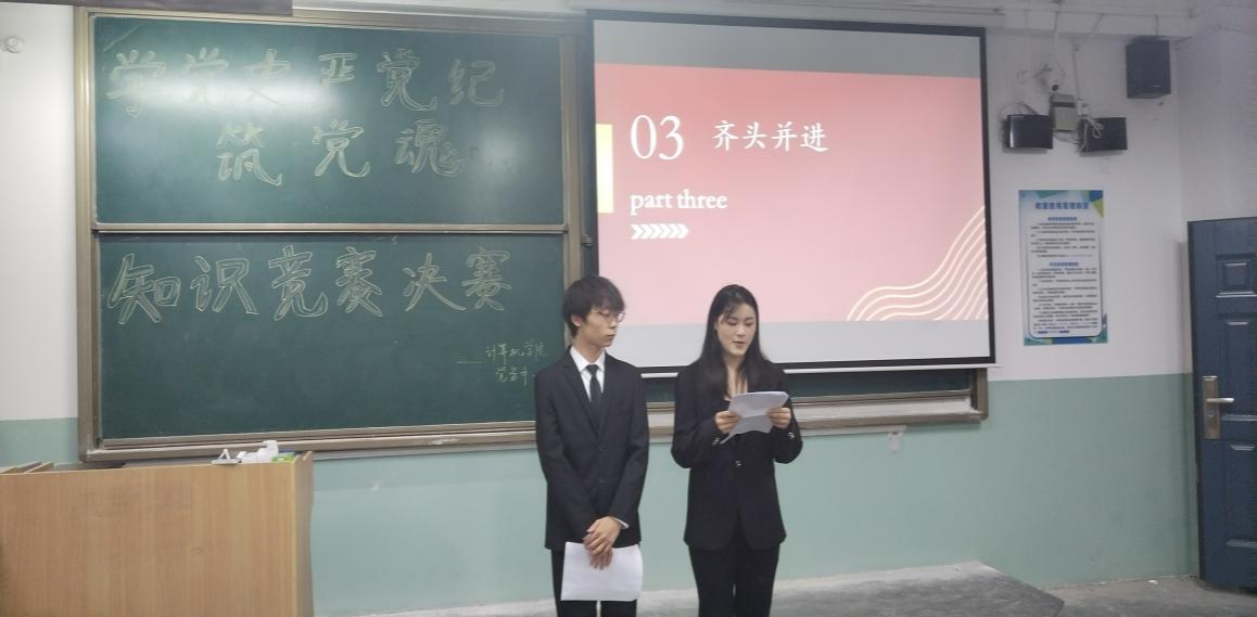 为深入贯彻落实党中央全面从严治党要求,提高支部组织的凝聚力、号召力和学习动力,增强支部青年同志们的责任感、使命感和光荣感,jinnianhui今年会学生党务中心于6月5日晚在主楼320教室举办以“学党史、严党纪、筑党魂”为主题的知识竞赛决赛活动。本次活动由张露露和刘婧担任主持人,参赛队伍由初赛中表现出色的同学们随机组成,共四组。jinnianhui今年会学生第一党支部书记贺宇、学生党务中心负责人高韶韶以及学生支部入党积极分子出席本次活动。