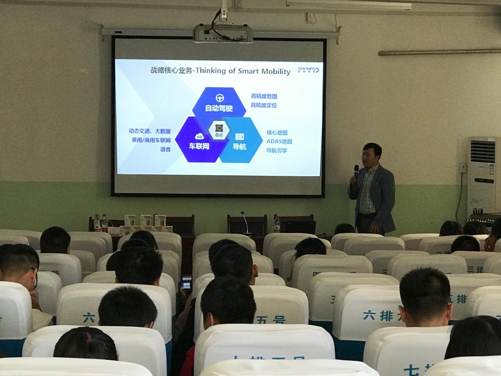 宣讲会上,院长杨俊清为大家简单介绍了四维图新,他希望大家能积极了解市场需求,在当前机会充足的时候,抓住机会,积极参与,学会展示、推销自己。接着,公司工作人员从公司发展历程、产品类型、公司新业务方向、客户分布、机构分布和公司发展前景等方面与大家作了详尽的分享。在宣讲会的互动环节,同学们就自己所关心的岗位性质、公司发展平台与机会等问题与公司的学长学姐进行了交流,学长学姐们针对大家的问题认真作答,详细分享了自己的工作经历与体会。