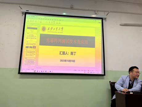 20231010日上午,西安工业大学兵器科学与技术学院院长助理、武器系统与工程系主任陈丁高级工程师来我校进行学术交流讲座。在莲湖校区北楼447教室,陈老师做了题为光幕阵列测试技术及应用的学术报告。