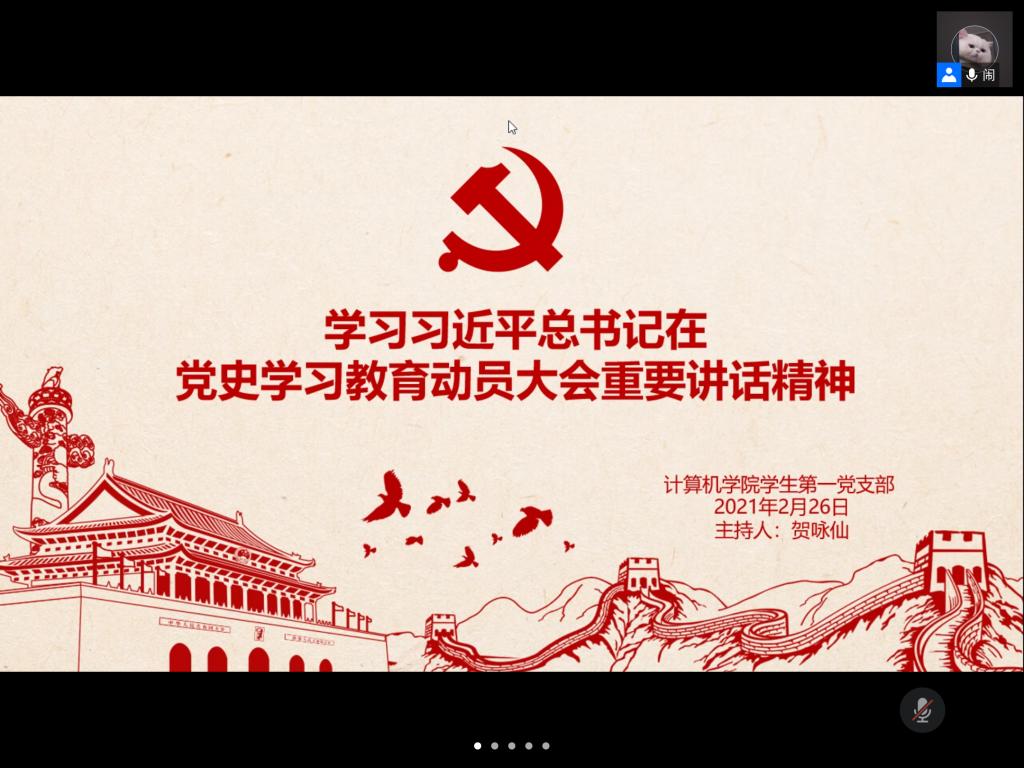 为了更好地学习党史,jinnianhui今年会学生第一党支部于2月26日晚上7点在线上开展了学习习近平总书记在党史学习教育动员大会上的重要讲话精神。本次学习由学生第一党支部学生党员贺咏仙主持,学生第一党支部所有党员、预备党员和积极分子参会。