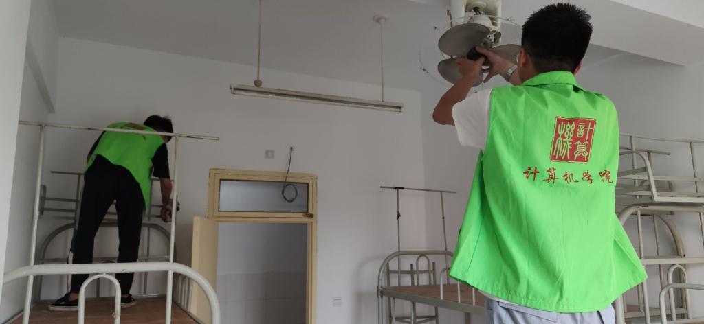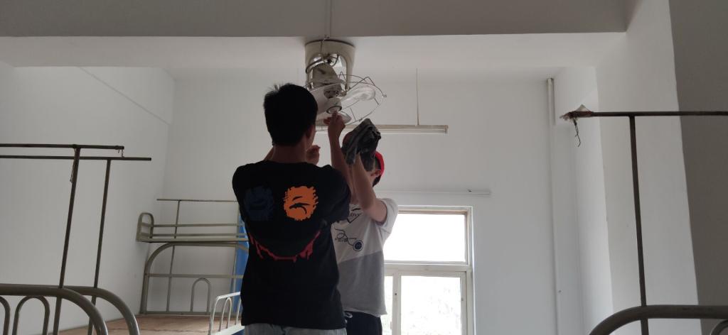 活动现场,学生党员们有序领取劳动工具,分工明确,积极投身到卫生打扫工作中。在擦拭桌椅床铺、清洗电扇电灯等任务开展过程中,党员们相互配合,同心协力,任劳任怨,没有留下任何一个死角。经过清扫工作后,新生宿舍焕然一新。