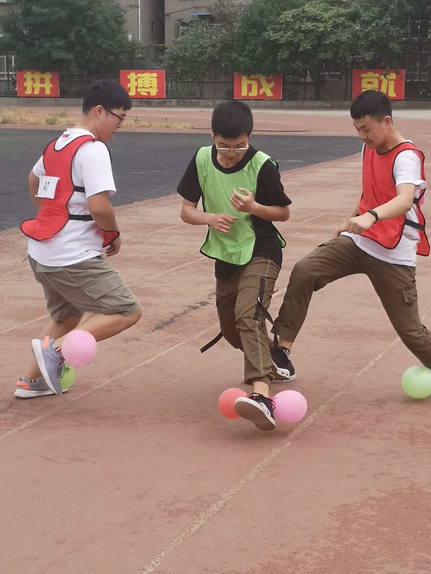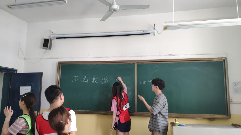 学院共28名同学参加活动,大家分成四组进行对抗赛。比赛设置了两个环节,第一个环节包括指压板跳绳、整蛊吃糖、过五关斩六将、你画我猜、听歌识曲等形式多样的小游戏,获胜的同学可以在第二个环节得到特权。在第二个环节中,参赛者在操场进行撕名牌小组对抗赛,同学们积极参与其中,为自己所在的团队拼尽全力。